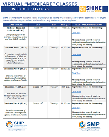 Virtual Medicare Classes Being Offered Starting Monday, December 15, 2025. Please join us!